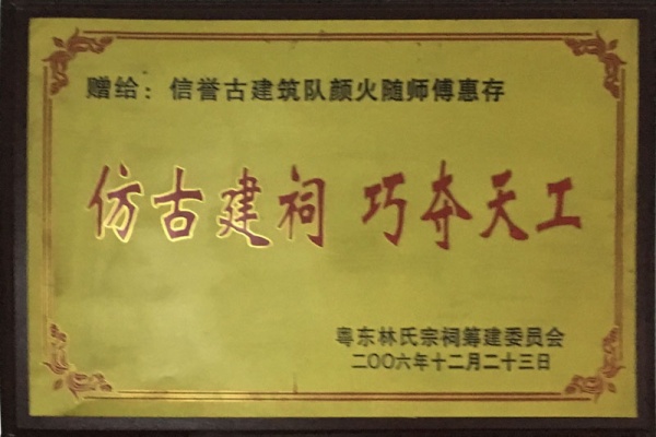 汕尾市信譽(yù)古建筑工程有限公司,是一支繼承和發(fā)揚(yáng)潮汕民間傳統(tǒng)工藝文化的仿古建筑團(tuán)隊(duì)。公司秉承“信者,行于天下”的理念,以“傳承與發(fā)展,建筑與藝術(shù),歷史與文化”為宗旨,為各界朋友提供專業(yè)、誠信的服務(wù),精誠合作,共同發(fā)展。